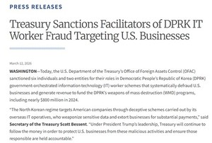 미국 재무부가 북한 IT 인력의 해외 기업 위장취업 사기 조직에 대해 개인 6명과 기관 2곳을 제재했습니다. 북한 정권이 위조 신분·가짜 이력서로 미국·동맹국 기업에 취업시켜 2024년 한 해에만 약 8억 달러(약 1조 1천억 원)를 조달한 것으로 파악됐습니다. 이들은 원격 근무를 위장해 기업 내부 네트워크에 악성코드를 침투시키거나 기밀 데이터를 탈취하기도 했습니다. 국내 기업도 해외 원격 채용 시 이력서·신원 위조 여부를 반드시 확인하고, 출처 불명의 IT 인력 채용 제안에 각별히 주의하세요.